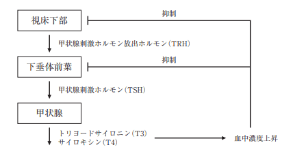 問題 15 図は甲状腺ホルモンの血中濃度を一定に保つネガティブフィードバック機